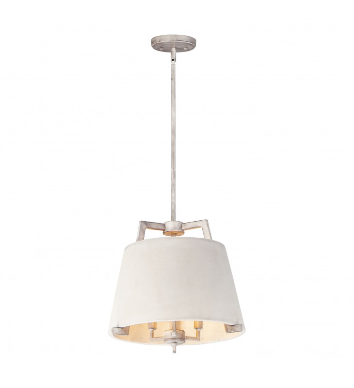This unique pendant features a concrete shade finished which is supported on a metal frame finished in a faux-painted Driftwood. Hanging in the interior of the shade is a 3 light cluster to add a refined element to this rustic contemporary design.