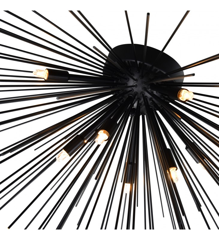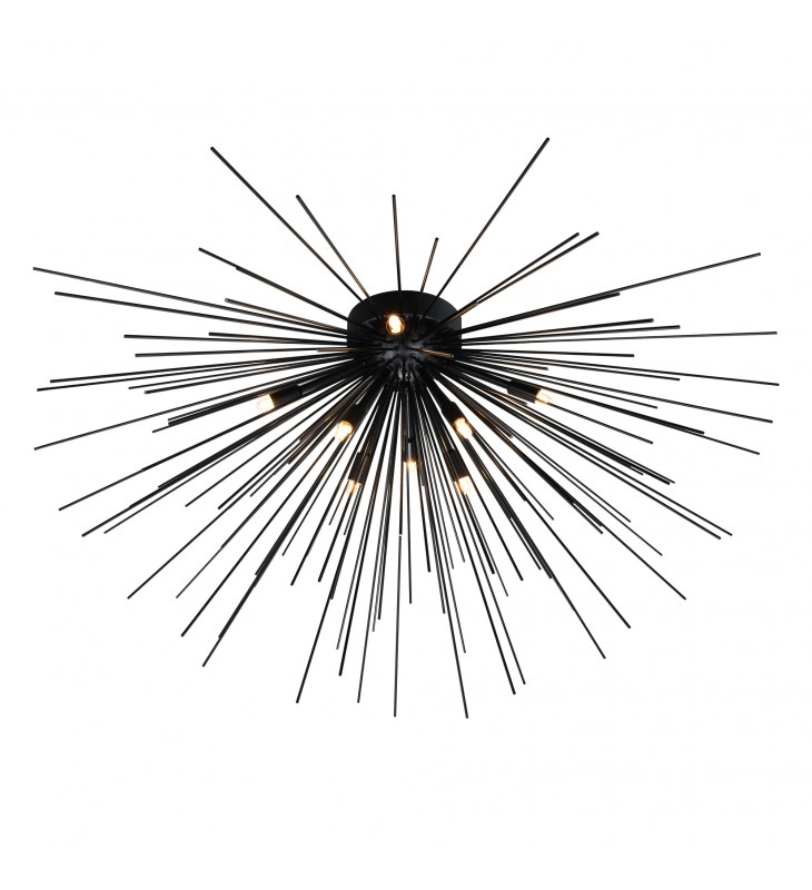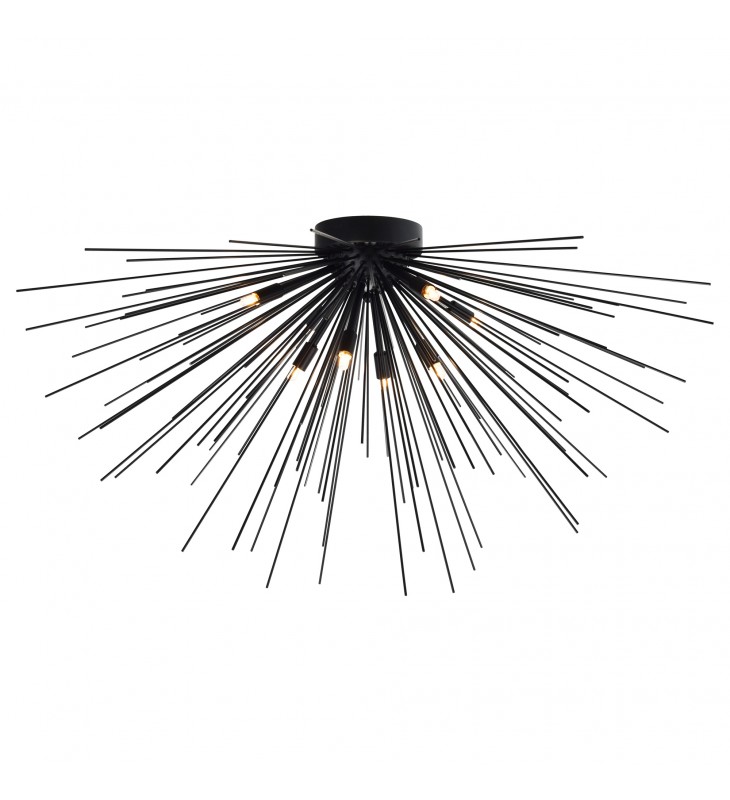 Like a ray of sunshine, the Savannah 8 Light Flush Mount Light in black Finish will lend your home a golden glow. This breathtaking luminaire designed with a starburst or Sputnik style gleams ultramodern elegance in every direction. Eight unshaded lights provide ample illumination and ensure your space gets its much-needed dose of pizzazz.