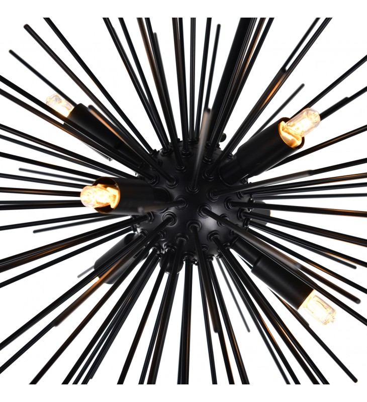 Brimming with character, the Savannah 6 Light Chandelier in black Finish will make a poignant design piece. If you\'re looking for a luminaire with a dramatic flair, this fixture with a starburst silhouette is perfect for you. Hang a pair together and let their golden explosion of light bring your stark white space a captivating glow.