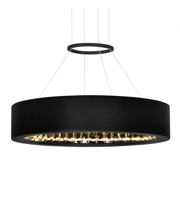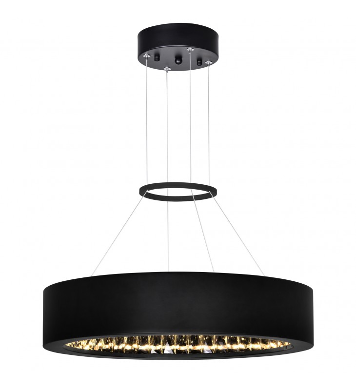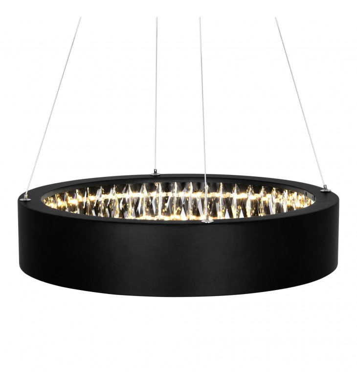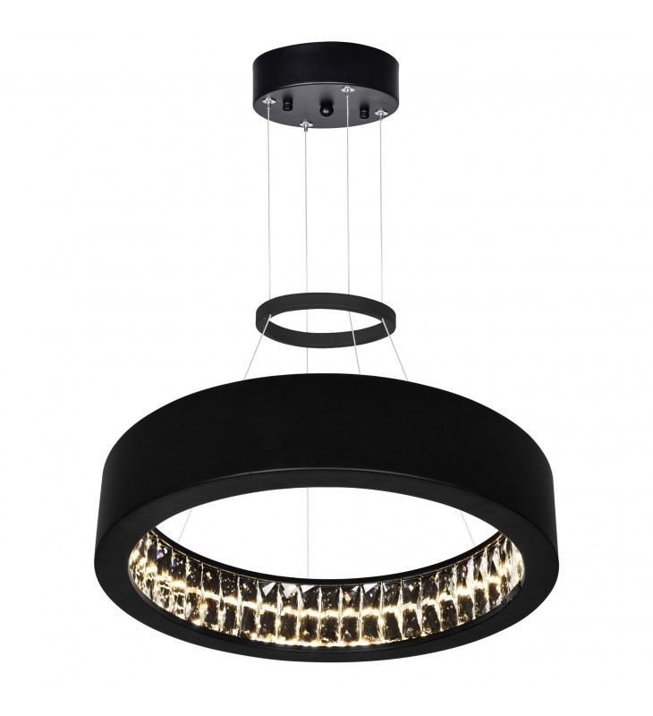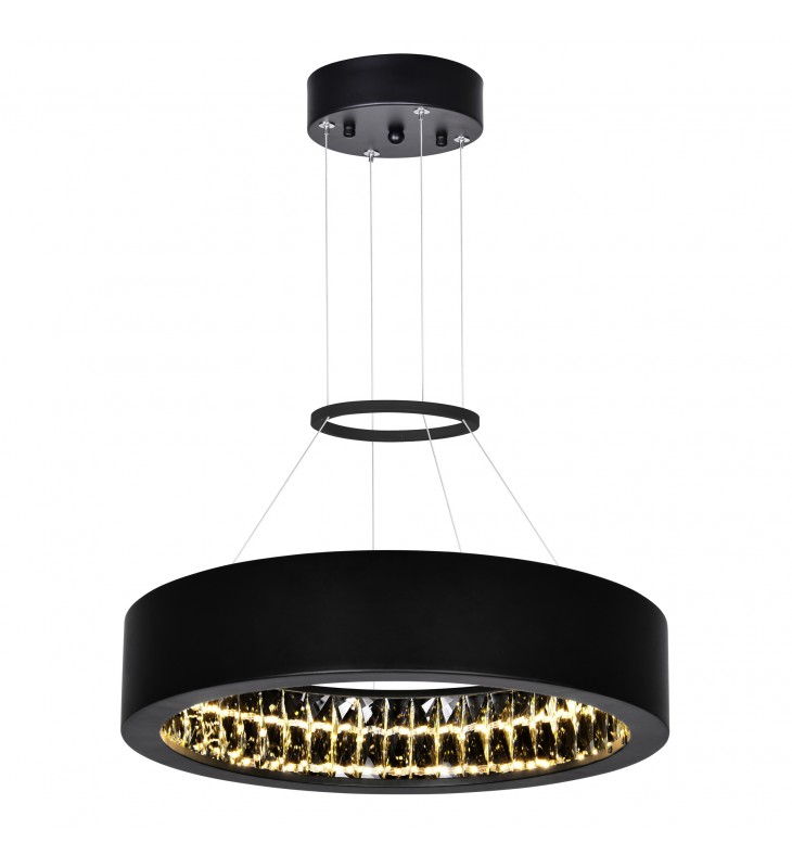 The Rosalina 16 inch LED Chandelier in Matte Black is a simple and understated solution to freshening up the look of your space. This down chandelier with a sleek circular design will update the look and feel of any room without adding too much visual weight. Instantly transform your living room, dining room, kitchen, or bedroom into a contemporary living space with this tastefully-designed modern ring chandelier.