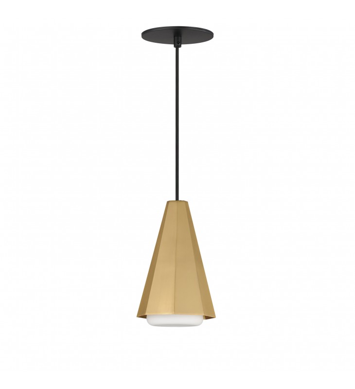 The Rizzo collection exudes stylish flair and spirited design, combining faceted metal shades in Natural Aged Brass with striking Matte Black accents. A flat-bottomed Satin White glass shade protrudes gracefully from the base of each metal shade, delivering soft, inviting light with a touch of elegance. Available in a variety of versatile configurations, the collection includes an articulating 4-arm chandelier, two sizes of stem-hung linear pendants, cord-hung multi-mini pendants, a sleek wall sconce, and a bold, coordinating flush mount. Elevate any space with Rizzo\'s perfect balance of timeless sophistication and modern edge.