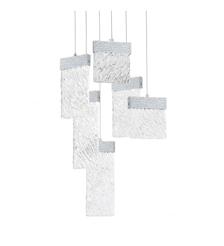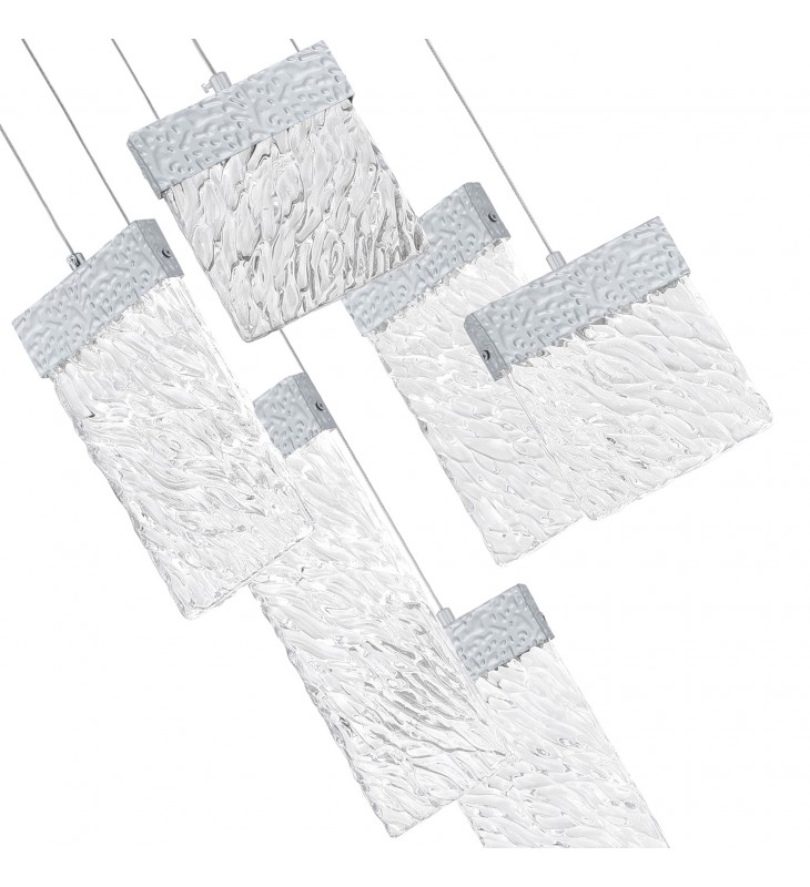 One of playful geometry and whimsical texture, this ceiling light fixture won\'t disappoint. The Carolina Pewter 16 inch LED Chandelier features six clear glass panels with integrated LED chips. The quadrilateral panels are made from clear glass and metal textured for an extra hint of style. This down chandelier is in pewter finish, a fancy grey hue that\'s elegant without being too glossy.