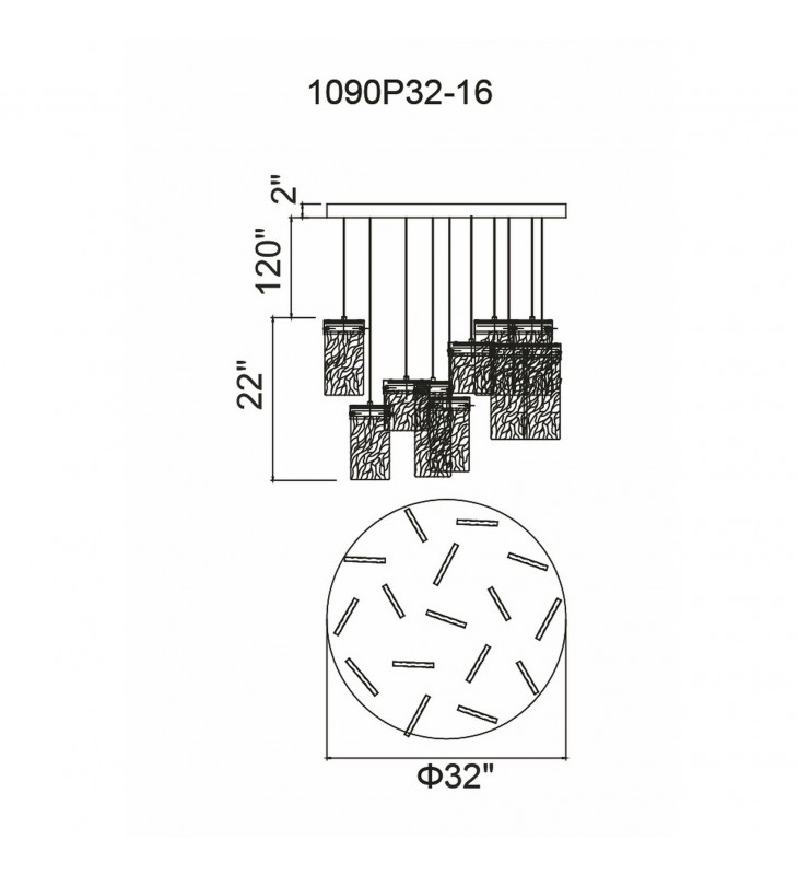 Carolina LED Chandelier With Pewter Finish (1090P32-16-269) - CWI