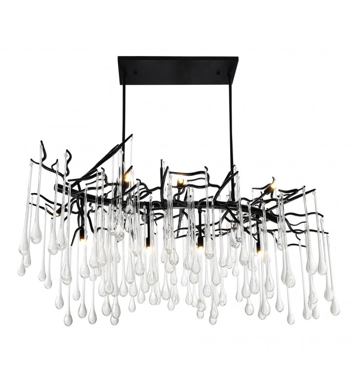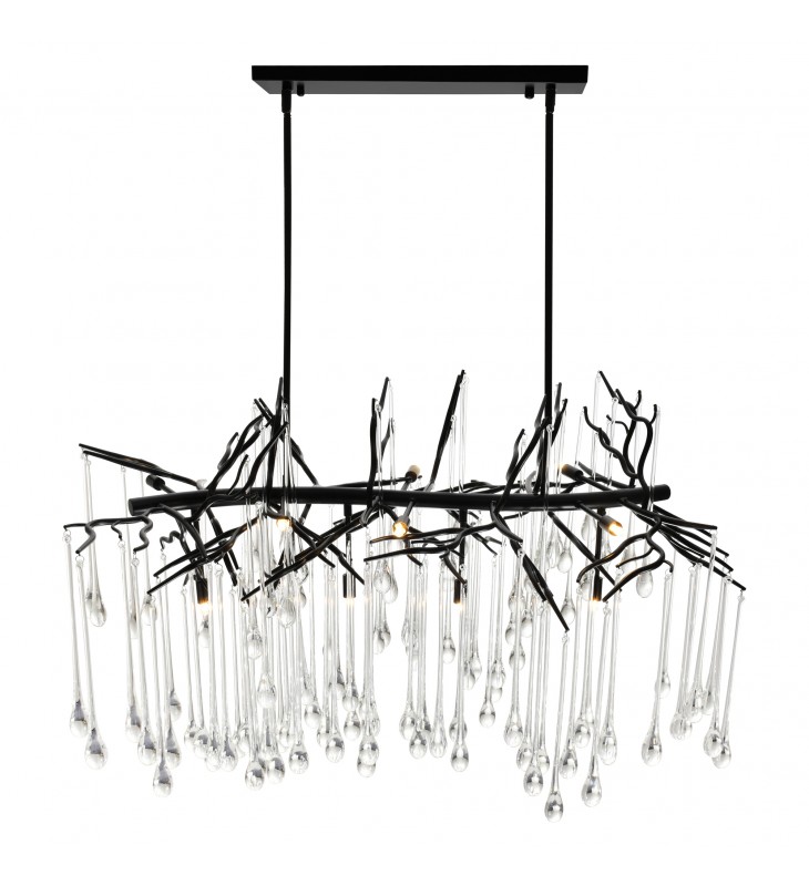 The Anita 10 Light Chandelier has a charm of its own. Finished in black, this sculptural down chandelier features a tree branch frame measuring 47 inches long. Clear long crystal drops hang from it. This impactful light fixture will certainly bring drama and character to your entryway, living room, or large dining room.