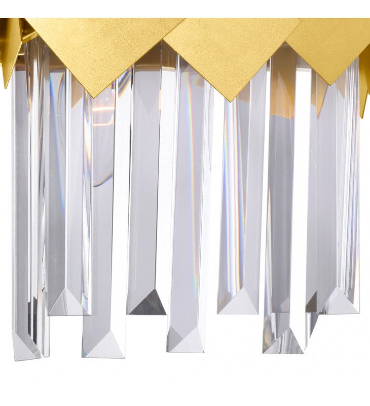 The Panache 1 Light Wall Sconce displays a unique and exciting take on a traditional crystal sconce. This wall light gives off an industrial glam vibe with its medallion gold finish, metal square and rectangular cut-out accents, and clear crystal prisms. Illuminate a room softly and stylishly with this contemporary crystal wall sconce.