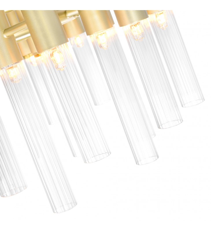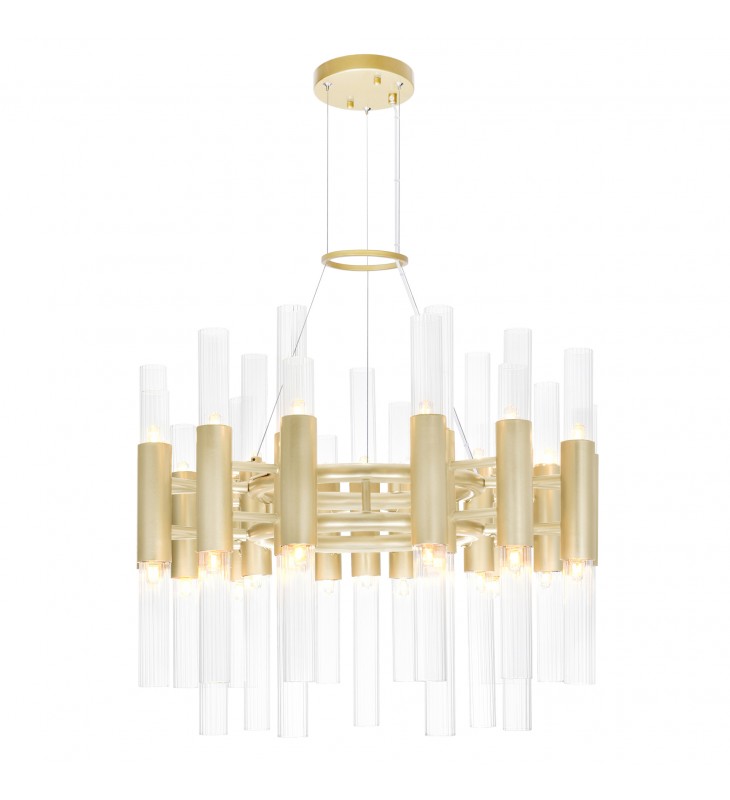 Designed with a simple shape but with a luxe color, the Orgue 42 Light Chandelier is ready to give your space a touch of understated elegance. This down chandelier in satin gold finish has upright clear glass tubes positioned to hold 42 LED G9 bulbs. The pendant measures 20 inches in diameter and is the perfect size to add some modern flair to a basic dining room.