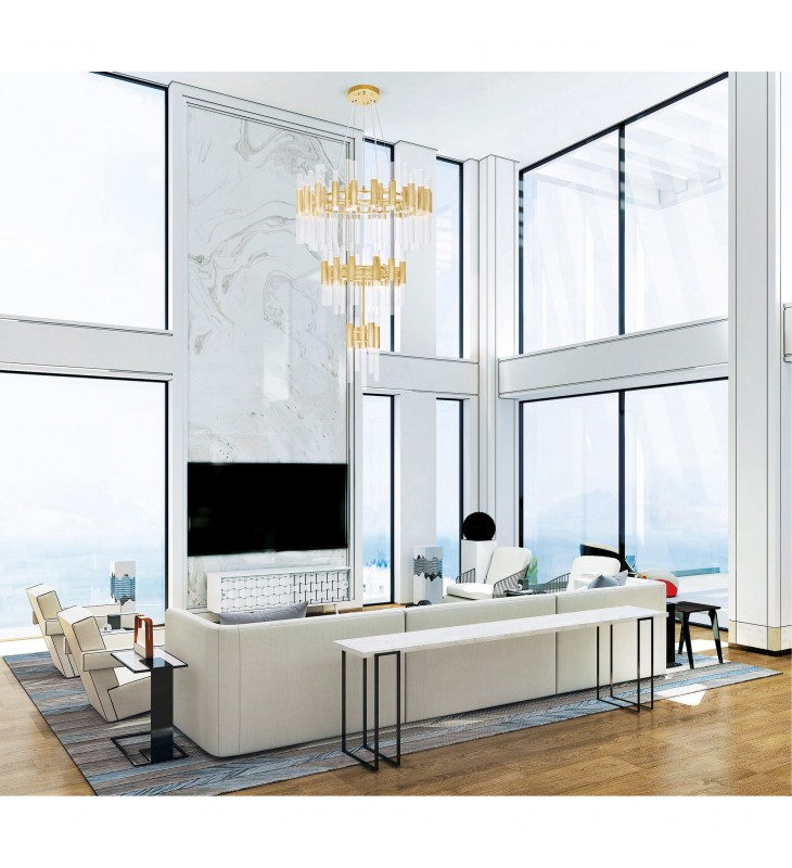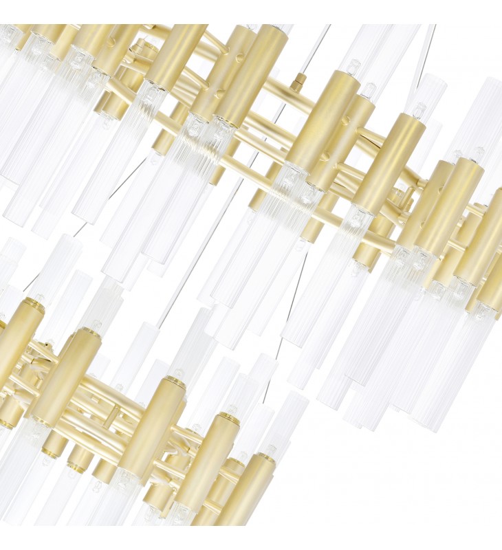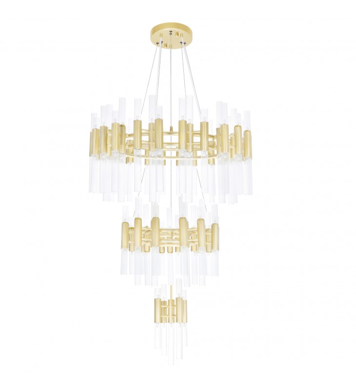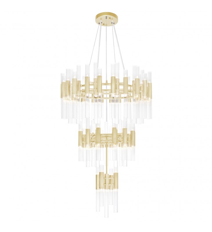 With the Orgue 123 Light Chandelier, you never have to worry about not having enough light. You\'ve read it right. This breathtaking oversized down chandelier has over a hundred 5-watt G9 bulbs. They are housed on clear glass upward and downward tubes connected to three cascading round tiers in satin gold finish. Designed with simplistic elegance, this is the fixture you need to make your ceiling a talking point without it appearing too loud.