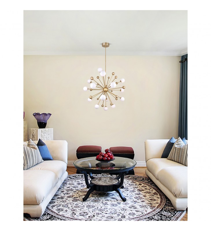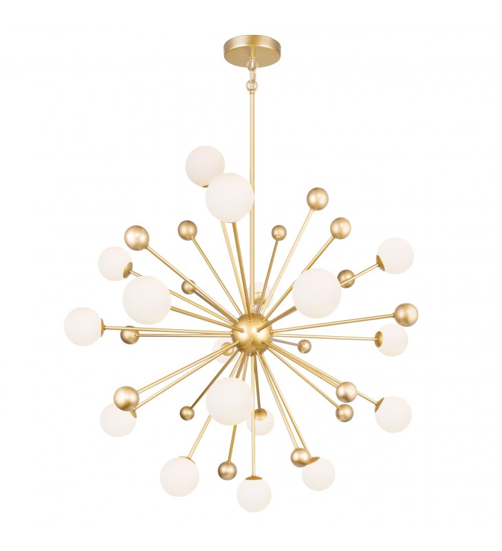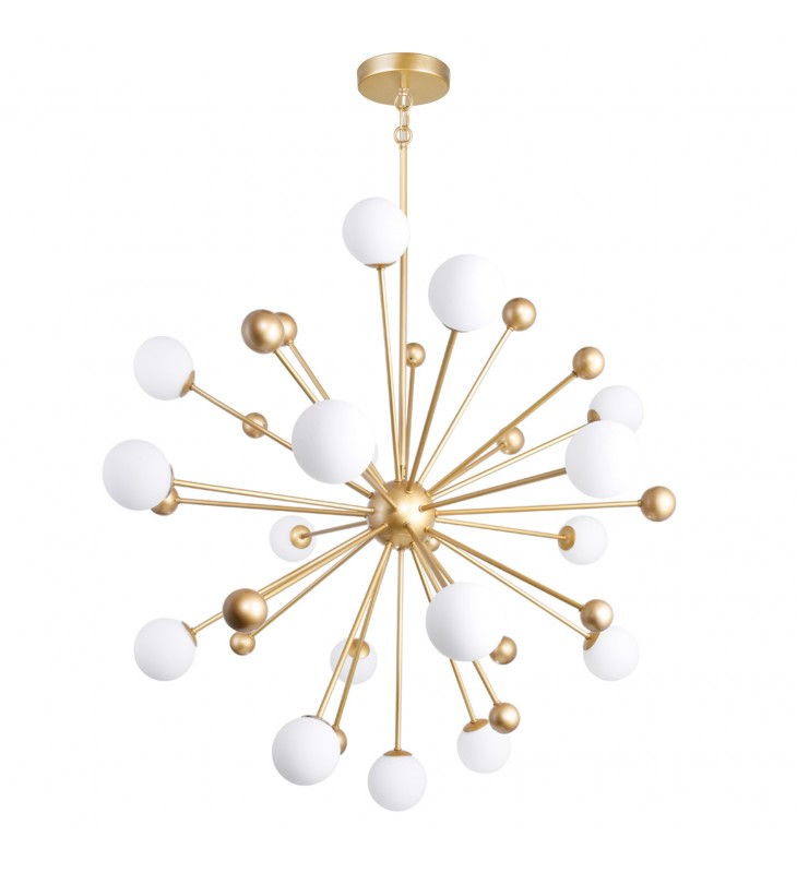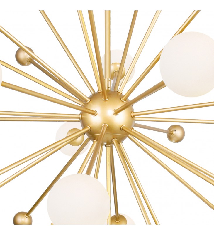 Give your black ceiling a daring touch by installing the Element 17 Light Chandelier in Sun Gold. Creating a luxurious contrast, this luminaire guarantees you of a glow that\'s urban, chic, and contemporary. Whether you place it in the dining room or the bedroom, this Sputnik-style chandelier in gold will elevate your home decor.