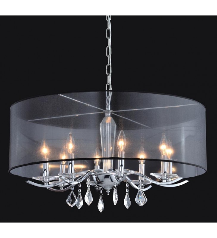 8 Light crystal chandelier (E12) candelabra 40w black organza shade w/chains (1132C8-BK)