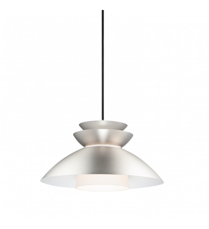 Inspired by classic Scandinavian design, these metal spun pendants of Black, White and Brushed Platinum feature mixed materials such as opal white glass or natural elements like Walnut finished wood and leather straps.