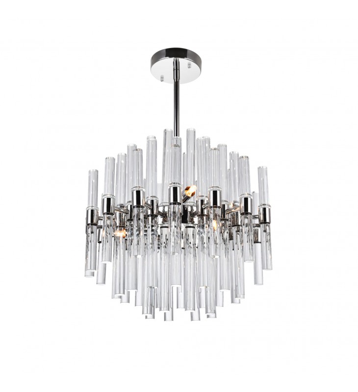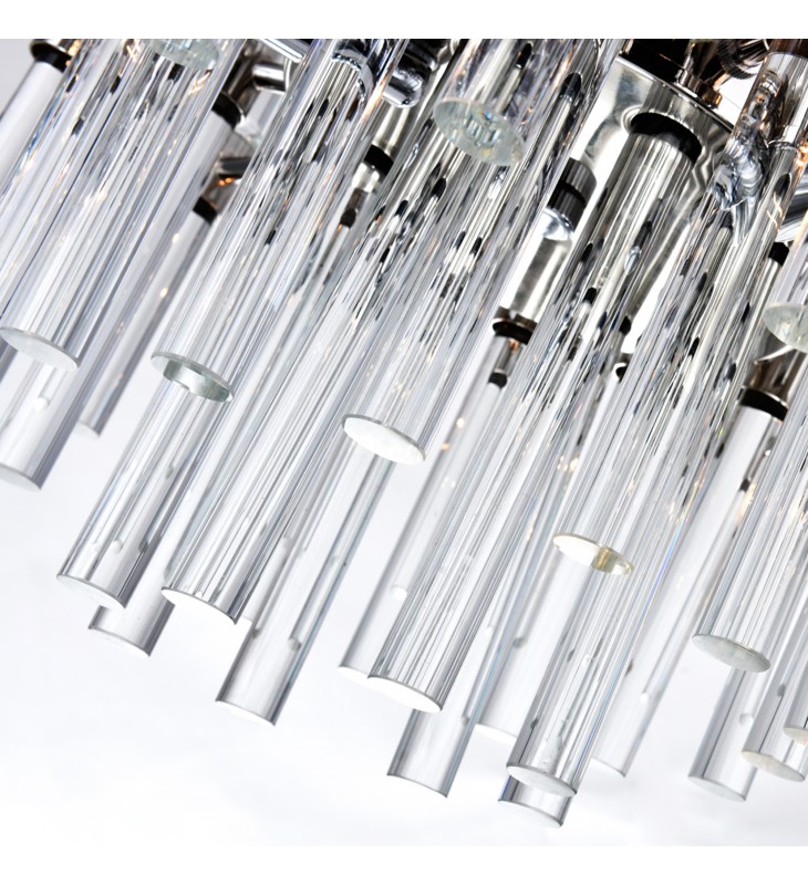 Welcome this light into your home and see it bring a stunning visual statement to your space. The Miroir 8 Light Chandelier features a 16 inch circular shade housing eight G9 bulbs. The shade is designed with a polished nickel frame seamlessly embedded with upright and hanging clear glass rods. This eye-catching light fixture will suit a wide range of contemporary spaces.