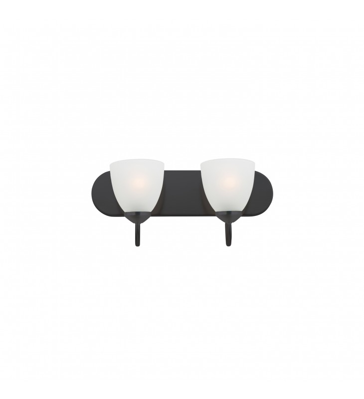 This transitional design works in any style home. Full length oval backplates support simple bell-shaped, Frosted glass shades. Available in Satin Nickel, Matte Black, and Polished Chrome.