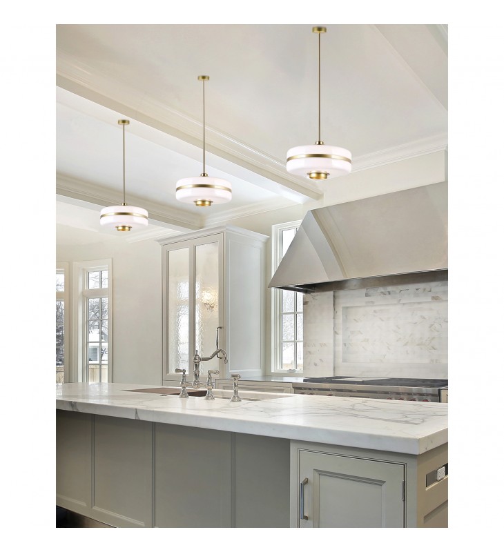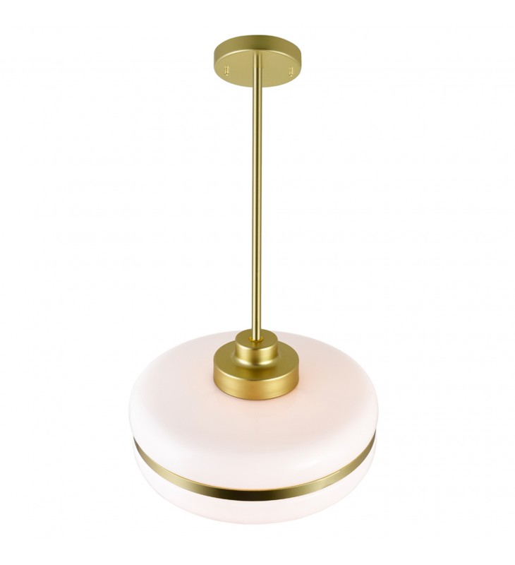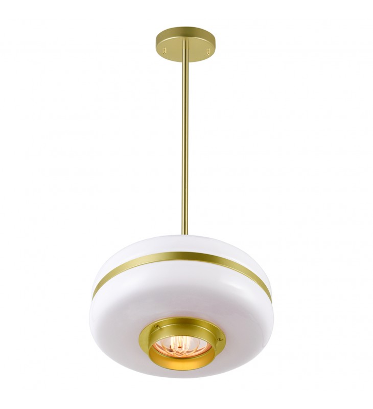 A fashionable choice for ambient illumination, the Elementary 1 Light Pendant in Pearl Gold makes a charming addition above a kitchen island or counter. Made of metal and glass, this 12 inch pendant light features a white and gold combination that looks chic, effortless, and modern. Hang a trio of this pendant light in your kitchen or dining room and bring not just a boost of brightness but also a subtle yet significant style to your space.\n