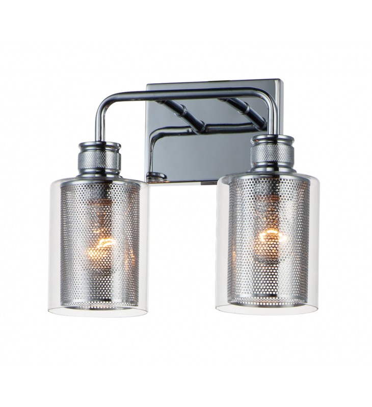 Clear glass cylinders lined with mesh screen are supported by knurled cups of Polished Chrome creates a contemporary design with an industrial twist. This economical collection provides a designer