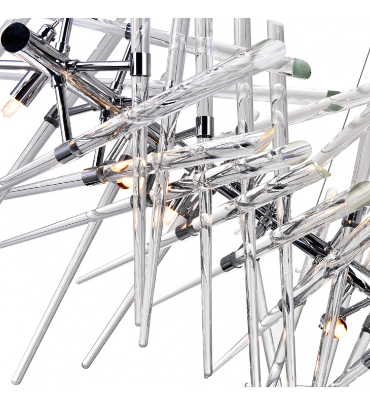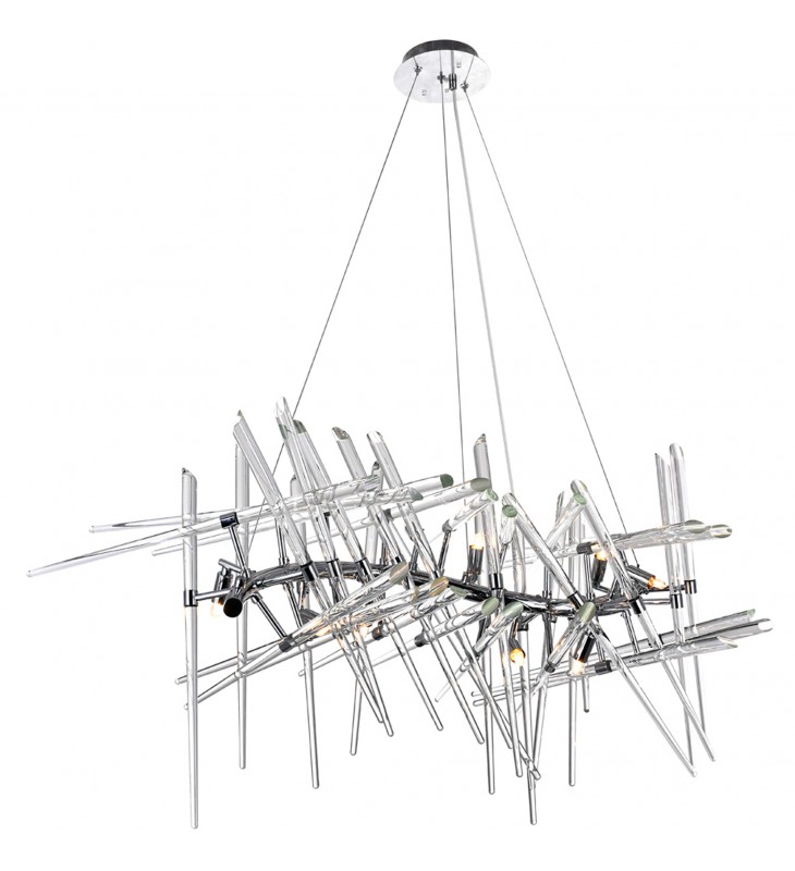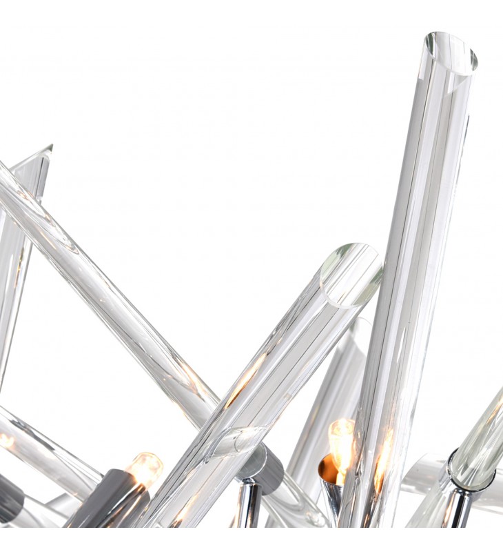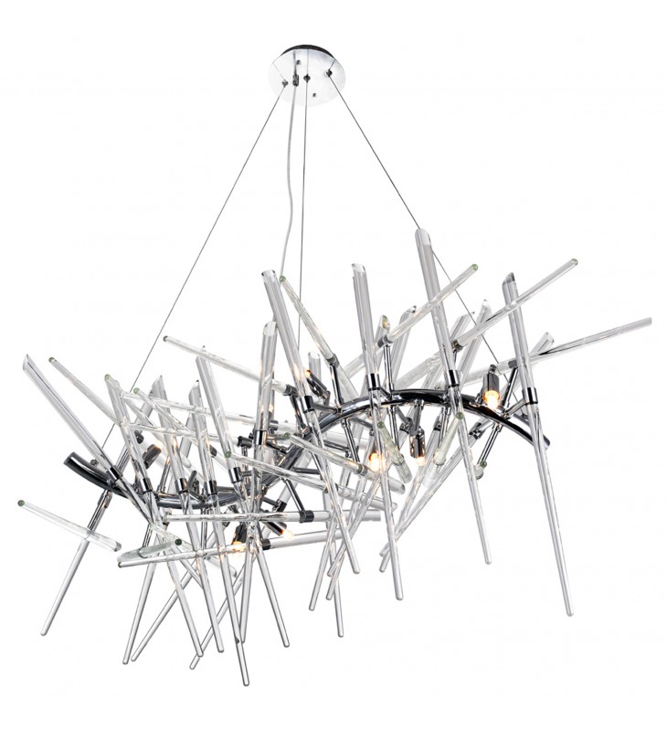 Built to stand out, the Icicles 10 Light Chandelier and its dramatic silhouette will surely become a show-stopping fixture in your space. This modern chandelier that looks like art more than a lamp is designed with a curvy chrome metal rod with clear glass rod branches. Nestled within the architectural display are ten bulbs that cast an inviting glow.