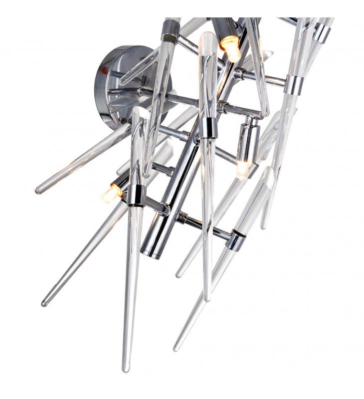 It\'s sleek and serious but peculiar and funky at the same time. The Icicles 3 Light Wall Sconce ensures that a blah spot in your home will now glow with visual appeal and character. This conversation-starting wall lamp is designed with a chrome-finished metal rod that connects to spiking clear glass rods. This small light injection is just what you need to enliven a not-so-exciting space.
