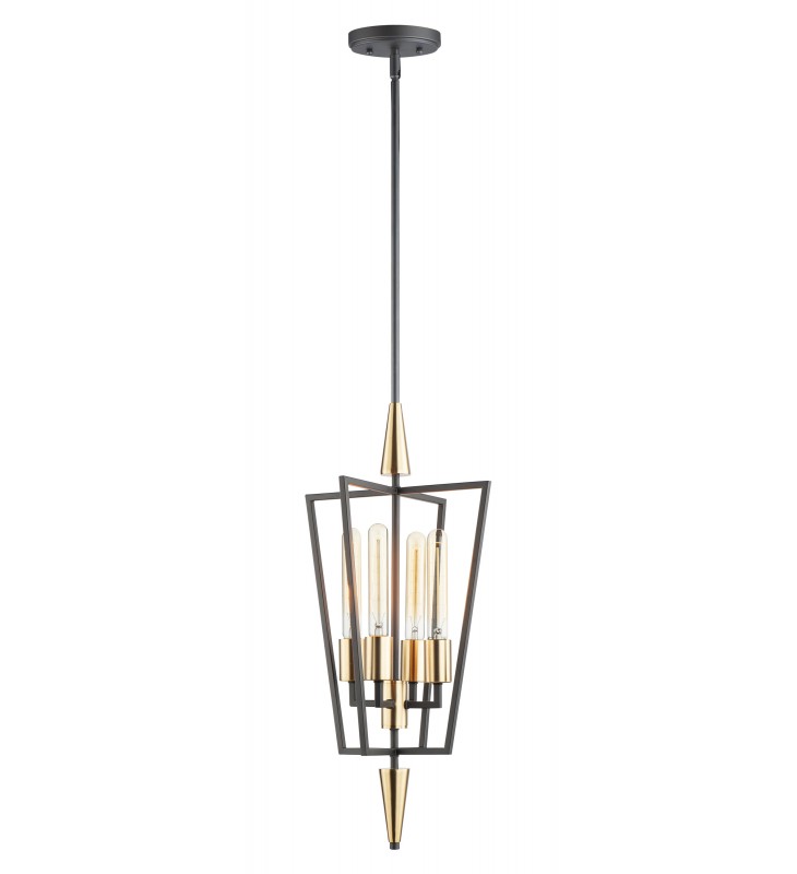 Sharp lines radiate from a pointed pin central body creating geometric angled wings that are sandwiched between matching conical fonts. Finished in a combination Antique Brass and Black, this collection is both contemporary and warm. Complete this look with vintage T10 light bulbs to for the full effect.