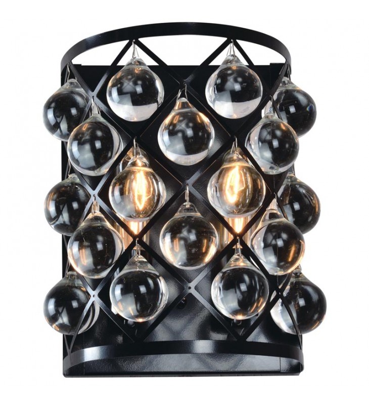 2 Light glass ball wall lamp black finish (E12) (1185WL2-GL)