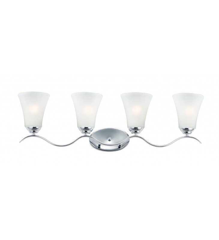 Gently waving arms of Satin Nickel or Oil Rubbed Bronze support tall-profile Frosted glass shades creating a scale normally not found in this category of lighting. The bath vanity may be installed up or down and also includes a Polished Chrome finish.