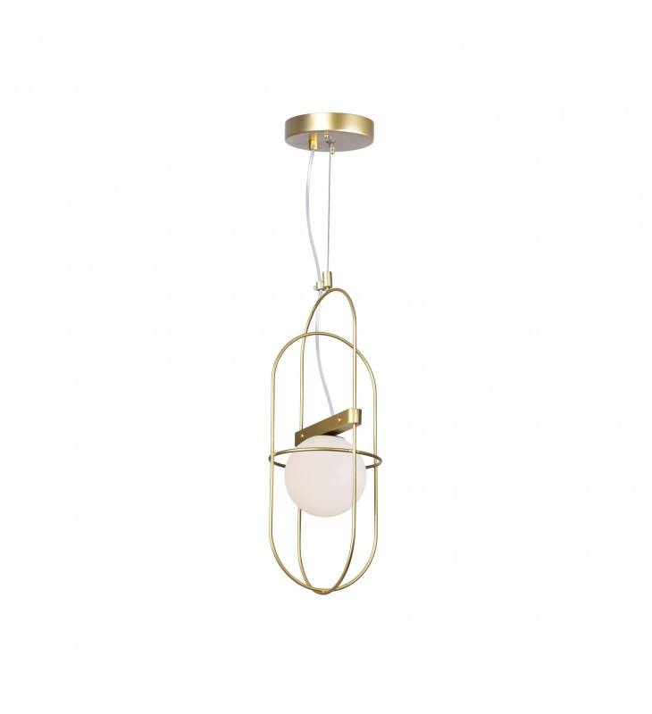 Sleek lines and sophisticated curves make up the edgy elegance of this lighting option. The Orbit 1 Light Down Mini Pendant in Medallion Gold is designed with a geometric profile. An open metal cage surrounds a frosted glass globe that will hold the LED bulb. This modern pendant light also has an adjustable cord so you can hang it according to your preferred height.