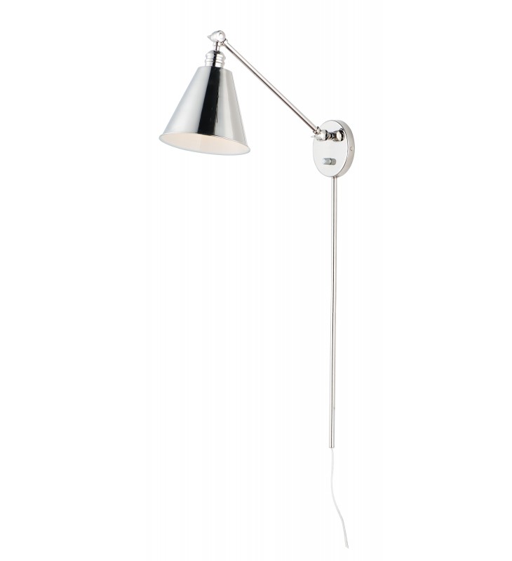 Direct the light exactly where you want it using the articulated arms and metal shades of the Library series. At the backplate, the arm pivots left/right and up/down to direct the light. Additional articulated arms angle the shade or extend/contract the distance of the light source from the wall. Available in Polished Nickel, Black and Heritage Brass finishes, the Library collection evokes industrial era classicism perfect for use as a task light or accent light. Complimentary table and floor lamps complete the collection.