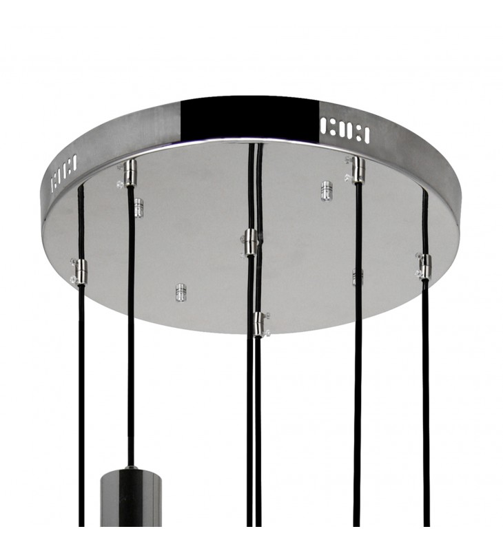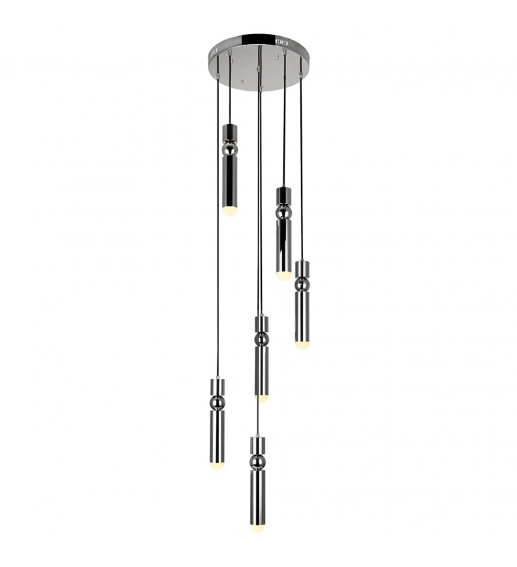 A contemporary alternative to a traditional chandelier, the Chime 7 Light Polished Nickel LED Pendant will bring a brilliant style to your space. This down ceiling light features six mini pendants suspending from a round canopy in warm silver tone. The chime-like silhouette and deep polish of this light fixture will easily give any space a sophisticated, high-end look.