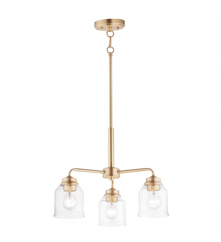 A modest frame of steel tubing gently bends to support a cluster of Clear Seedy bell-shaped glass. Similarly the bobeches and other metal accents echo that traditional bell shape creating an instant classic. An easy choice with transitional appeal, choose from a variety of complimentary finishes including matte Black, Heritage Brass or Satin Nickel.