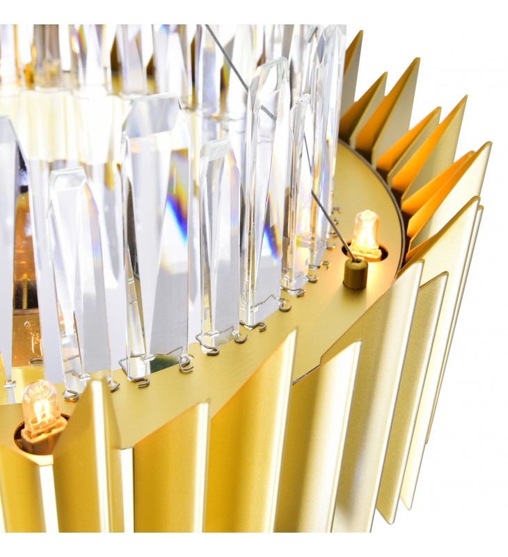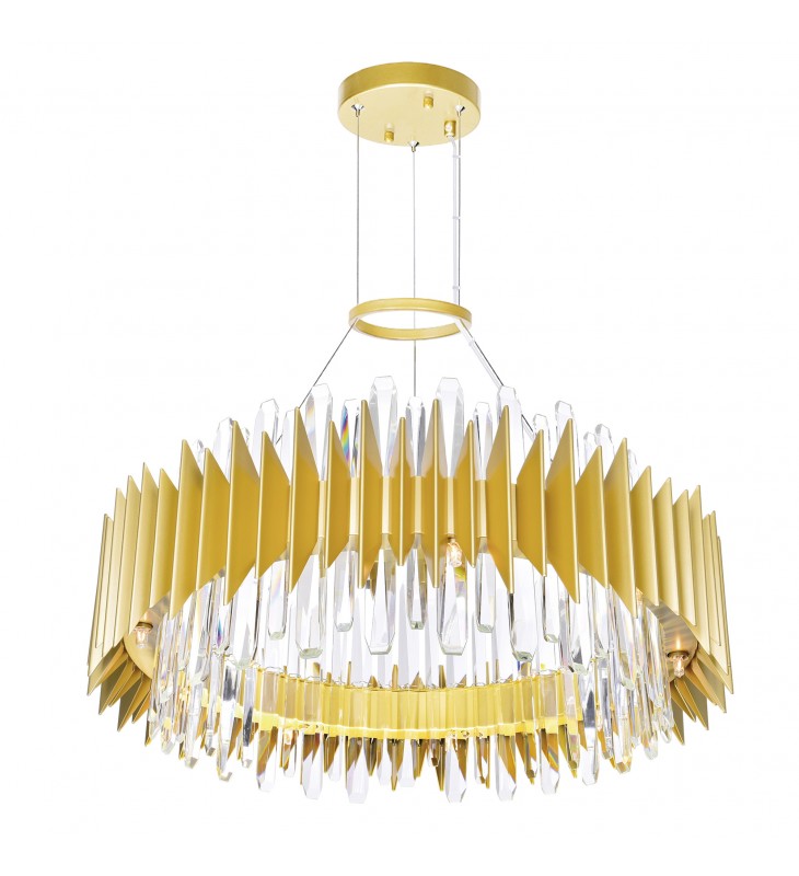 Refresh a room without spending a fortune. Install the Cityscape 18 Light Chandelier and let this 28 inch circular chandelier make a room in your home look extra compelling. This chandelier is finished in satin gold and displays an intriguing silhouette. Eighteen G9 bulbs make this modern chandelier gleam and glow.