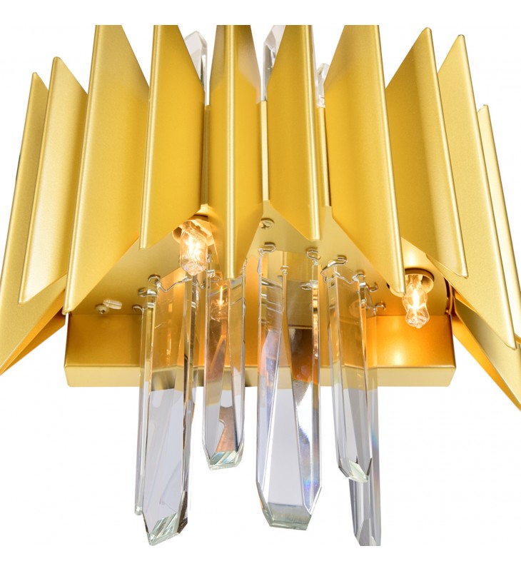 Add some urban glam to a dull area in your home with this Cityscape 5 Light Wall Sconce. Finished in satin gold, with zigzag motif, and decorative crystal prisms, this 12 inch tall wall light will offer an unexpected vibrance to any space. Switch up the atmosphere in your hallway, bedroom, or even bathroom by installing this luminous wall lamp.
