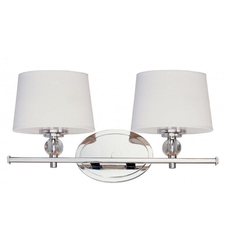 Exemplary transitional styling, the Rondo collection takes a classic shaded design and updates it with contemporary finishes and delightful glass orb details. The sharpness of the Polished Nickel frame is softened with the use of round crystal glass balls. The White hardback fabric shades are fit with frosted diffusers so the light is even and soft while concealing the bulb.