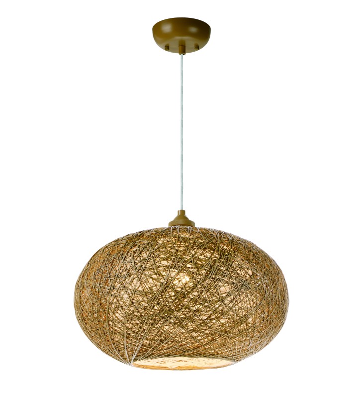 Spherical dual shades constructed of woven string in two tone finish combinations, Natural with White inner and Chocolate with White inner. Shades are treated for weather resistance and are U.L. approved for damp location which make them perfect for outdoor living spaces.