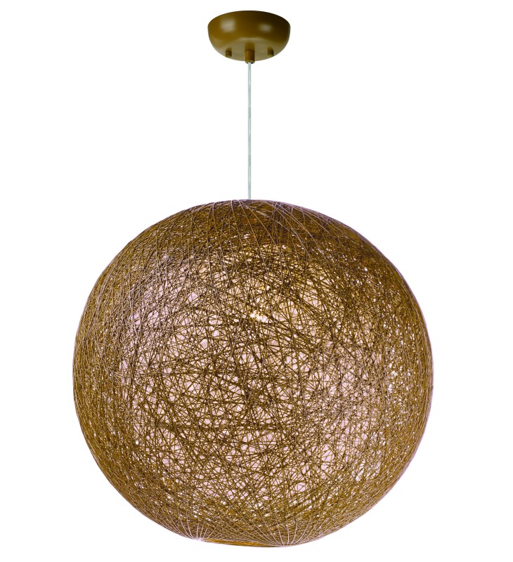 Spherical dual shades constructed of woven string in two tone finish combinations, Natural with White inner and Chocolate with White inner. Shades are treated for weather resistance and are U.L. approved for damp location which make them perfect for outdoor living spaces.