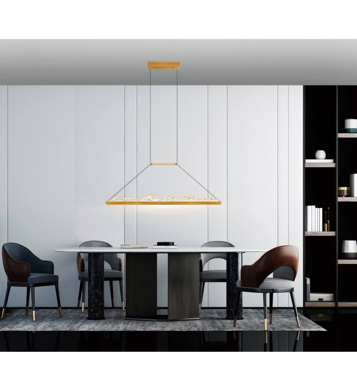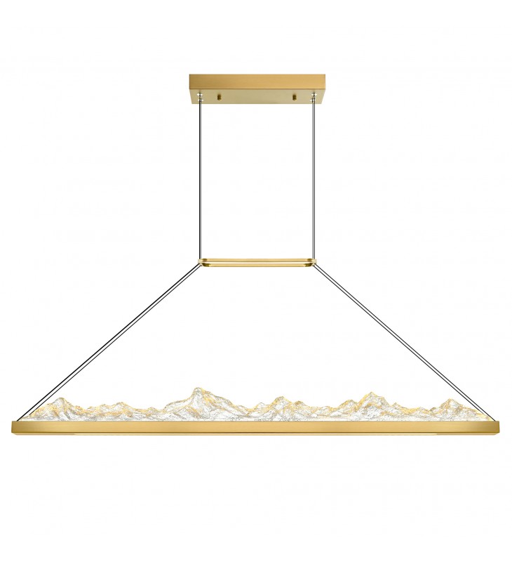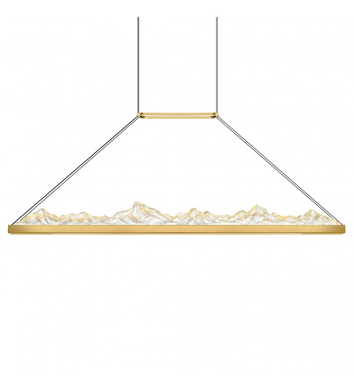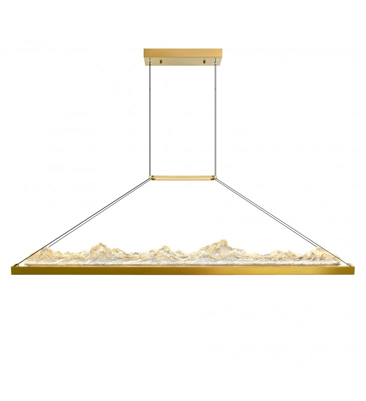 Experience the grandeur of the Himalayas Integrated LED Chandelier. A stunning lighting fixture that channels the serene beauty of the mountains into your home. Impeccably crafted with intricate detail, this chandelier captures the essence of the Himalayan landscape, bringing a touch of natural inspiration to your space in a beautiful brass finish. The cascading LED light emulate the tranquil flow of mountain streams, creating a harmonious and inviting ambiance.
