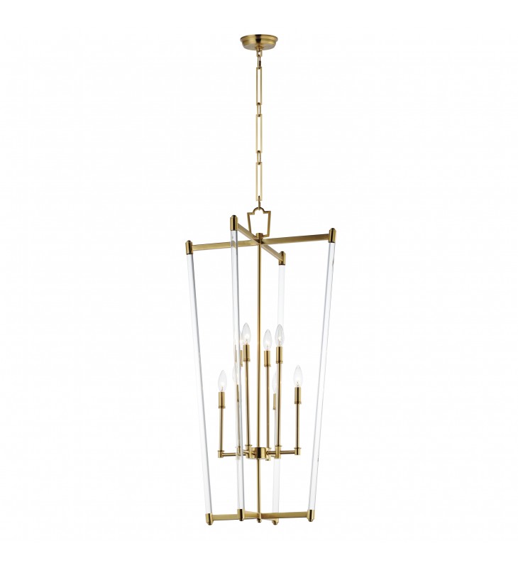 Unique and dramatic pendants are created using solid, Clear glass rods that fit into castings finished in Polished Nickel or Heritage Brass. The elongated forms are great for foyer spaces and stairways, while the sconces provide a chic accent to the space they are installed. Combining contemporary sleekness with classic styling, this collection complements a wide range of decor styles.