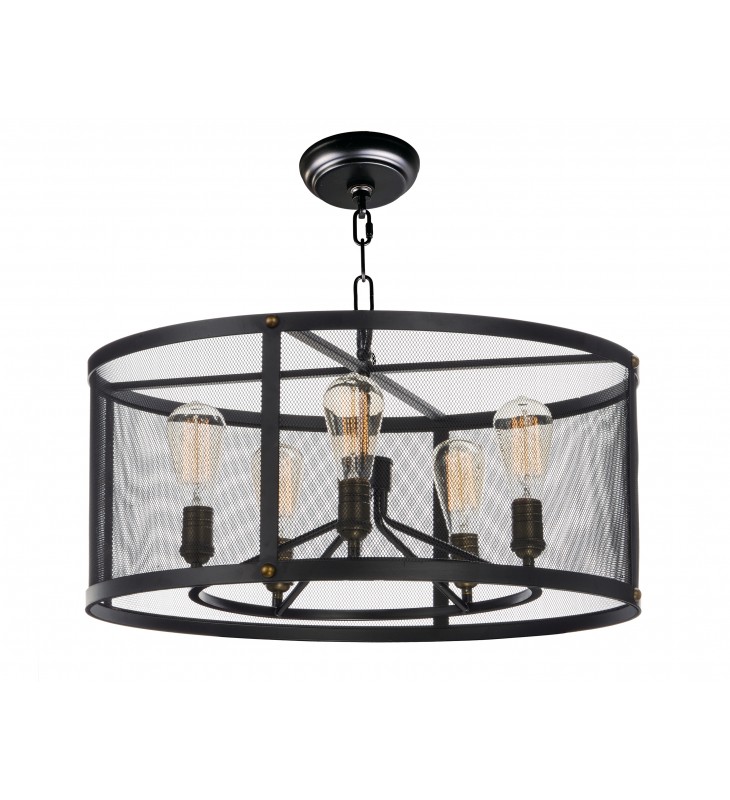 Popular in today\'s interior design is this industrial collection featuring frames of metal mesh finished in Black and accented with cast Natural Aged Brass accents looks great with vintage carbon filament bulbs. A large variety of size and price points are provided to satisfy everyone from the discriminate designer to the building contractor.