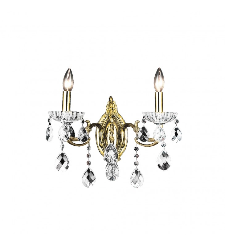 Looking classic and current at the same time, this Flawless 2 Light Wall Sconce brings a timeless character to wherever it is placed. Two candelabra arms in antique brass hold bulbs that shine a soft glow. Complete with crystal drip pans and faceted crystal bead adornment, this wall-mounted light source will stage an impeccable finish to your master bath, hallway, or living room.
