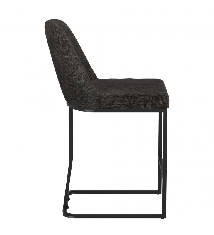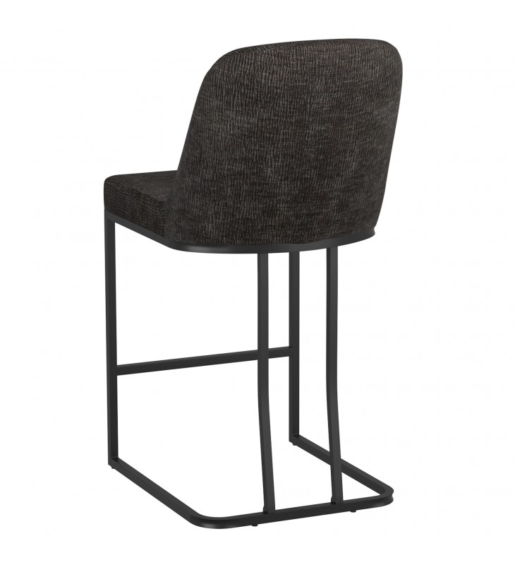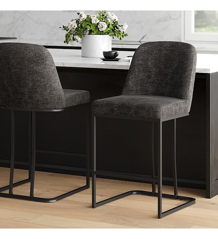 Modern, fixed-height stool; Oversized seat is upholstered with a plush, textured chenille fabric; Metal base and footrest in a black finish; Medium-soft comfort polyester foam cushion; Approximate weight capacity is 300 lbs