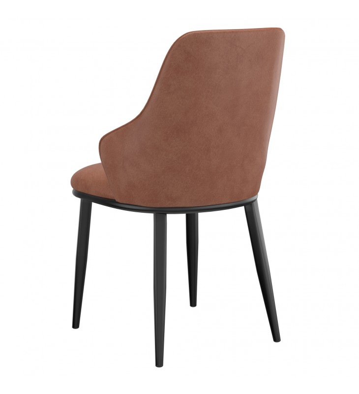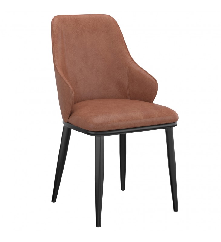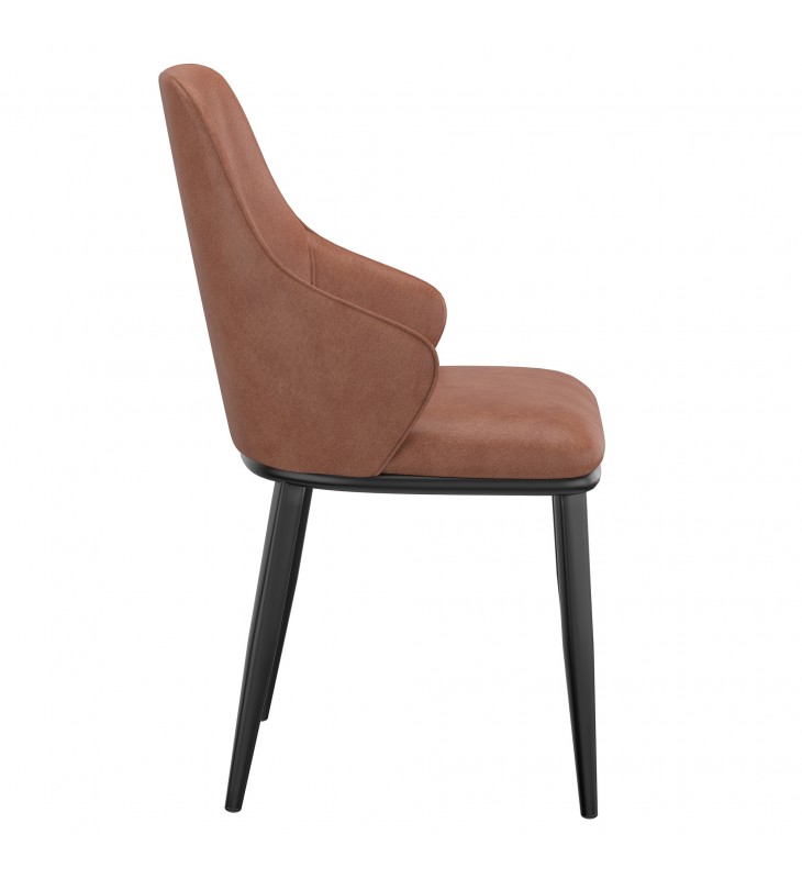 Modern 4-leg dining table; 1-1/2\" thick reverse bevel table top; Solid mango wood with a black, wire-brushed finish on table top; Natural variations will occur in mango wood construction; Modern armchair with metal frame