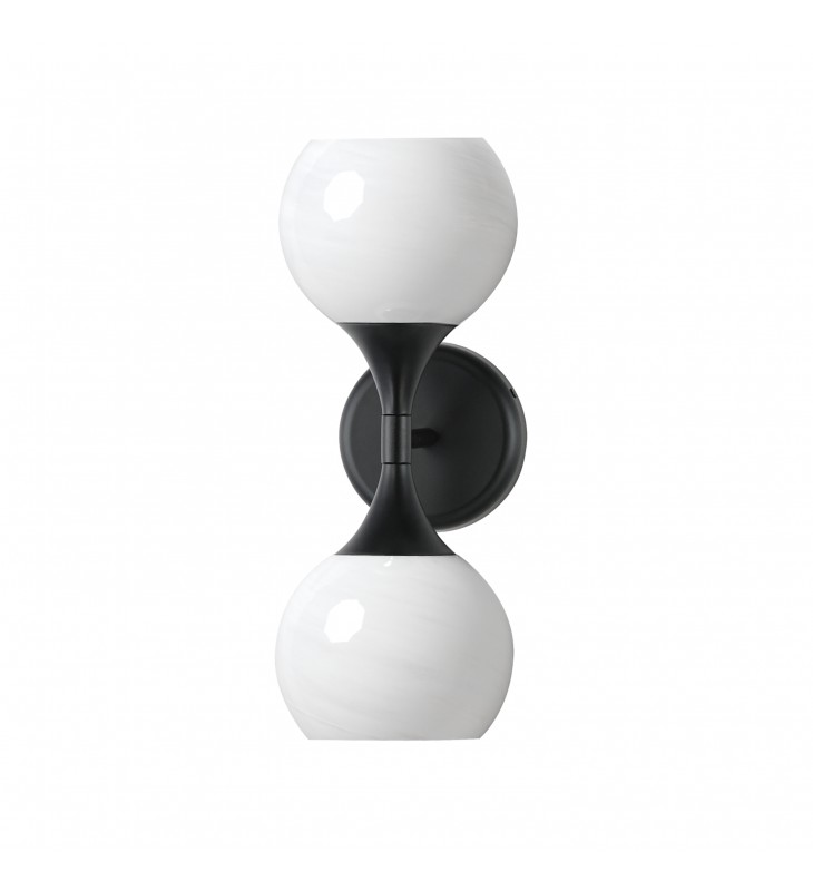 Featuring a swirling white Marble Glass globe that encases the light source, the shades are reminiscent of snowglobes. The collection provides a wonderfully wintery composition that is timelessly elegant effortlessly sophisticated. Choose from multiple sizes of the bath vanity lights as well as a larger glass pendant or flush mount options. Available in Natural Aged Brass, Polished Chrome, or Matte Black.
