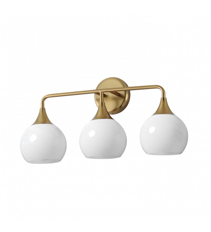 Featuring a swirling white Marble Glass globe that encases the light source, the shades are reminiscent of snowglobes. The collection provides a wonderfully wintery composition that is timelessly elegant effortlessly sophisticated. Choose from multiple sizes of the bath vanity lights as well as a larger glass pendant or flush mount options. Available in Natural Aged Brass, Polished Chrome, or Matte Black.