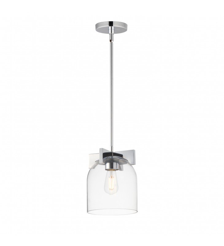 Cut-out metalwork curves around modern bell-shaped glass shades. The series includes pendants and bath vanities available in either Clear or a swirling Marble glass. Available in various complementary finishes: Polished Chrome, Matte Black, or Natural Aged Brass these fixtures make a delightful addition to bathroom spaces, bedrooms, or over a kitchen island.