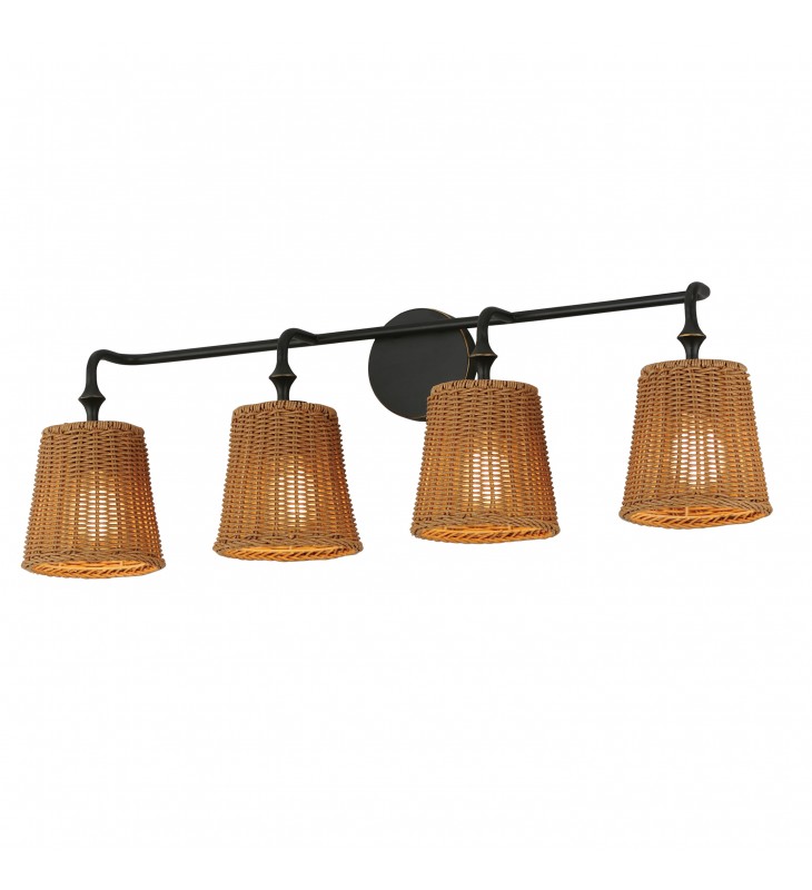 Featuring wicker shades made of synthetic rattan, this bath vanity lighting collection brings an elegant coastal flair to your space. Choose from a Natural wicker finish with a Dark Bronze frame accented by brushed golden highlights, or a Weathered White rattan with a Natural Aged Brass frame for a timelessly elegant composition.