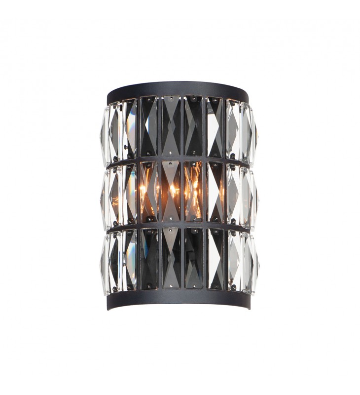Rectilinear Beveled Crystals bejewel a Matte Black frame creates stark contrast to this radiantly prismatic display of light. The bound crystal is fixed to the frame to reduce time spent dressing the fixture.