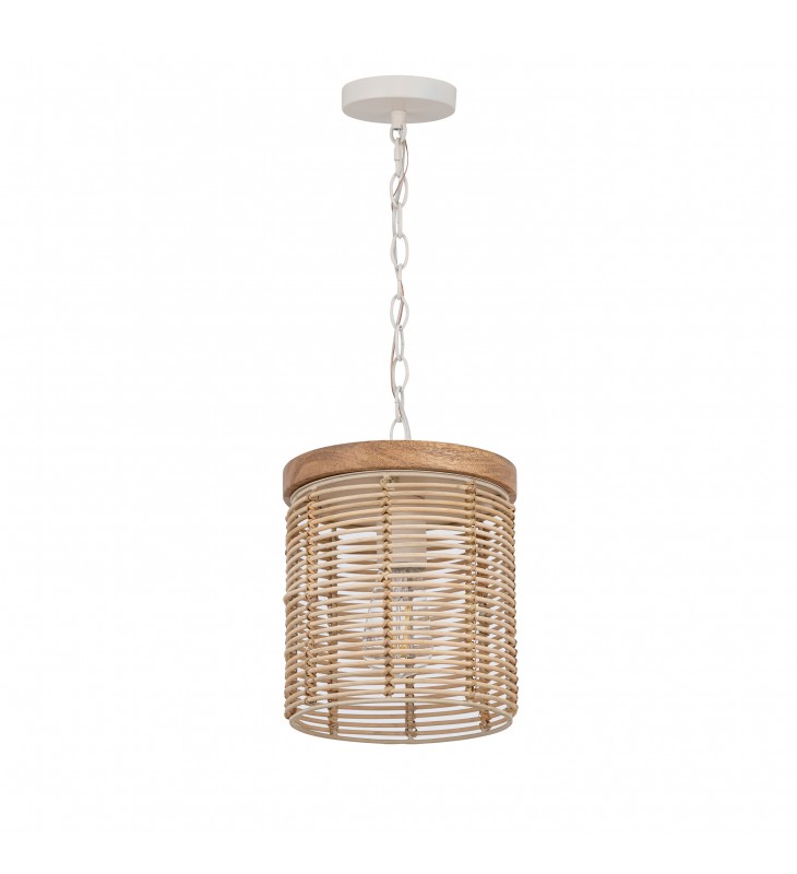 Hand-woven artistry blends Natural Rattan shades with Weathered Wood accents. The Weathered Wood finish combined with natural materials and metalwork in an Ecru finish create a neutral palette that exudes casual luxury. These pendants pair perfectly with a coordinating wall sconce and mirror.