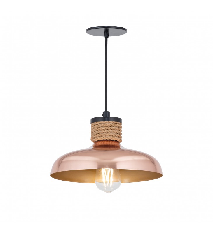 Drawing inspiration from industrial warehouse or farmhouse lighting, these classic shades feature a rayon fabric adjustable cord and hand-wound rope detail. The rustic elements are paired with spun metal shades available in a Copper finish or reflective June Bug finish.