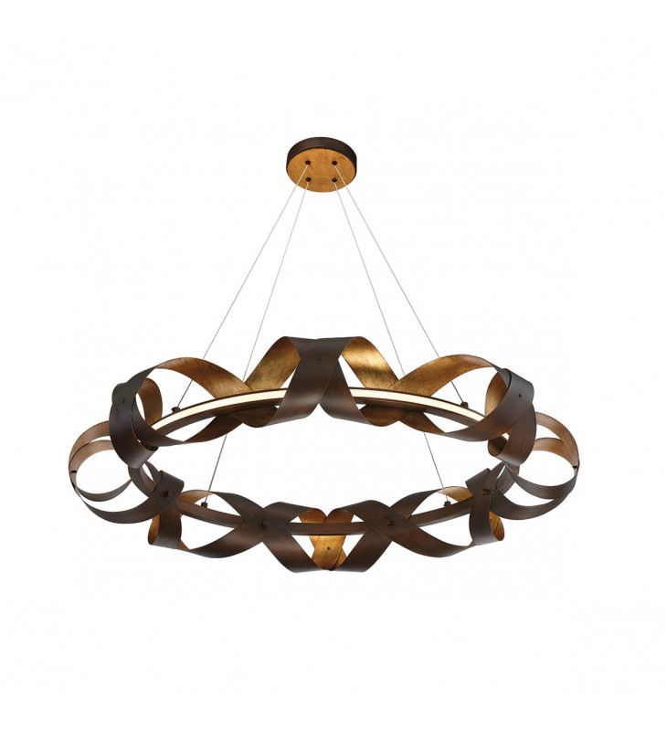 Banderia-Chd-33In-Bzgm-Bz; Banderia, Chandelier, 33\", Bronze-Gold Mix, Bronze Glass