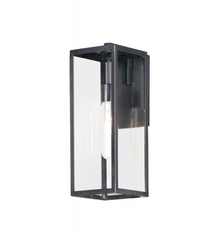 An elongated rectangular shaped design that is both minimalist and industrial. Die cast frames of Dark Bronze support Clear glass panels that provide an unobstructed view of the lantern\'s interior. Customize with your choice of lamps from vintage to tubular.