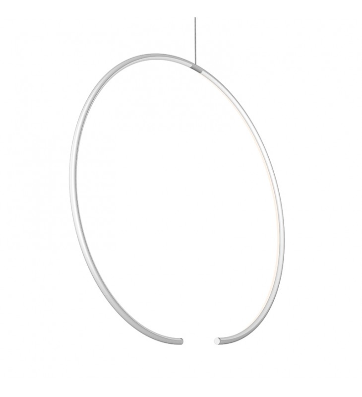 The movement of offset arcs rotate in suspension to form a modern interplay of deconstruction. Also available as a chandelier.