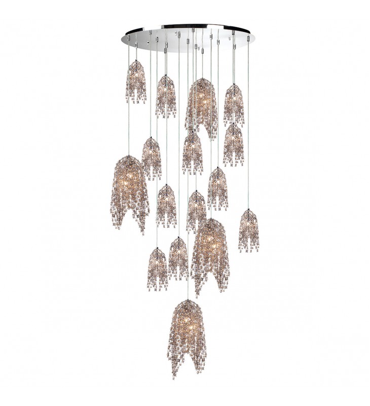 Danza-Chd-20Lt-38In-Chr-Am; Danza, Chandelier, 20-Light, 38\", Chrome, Amber Glass