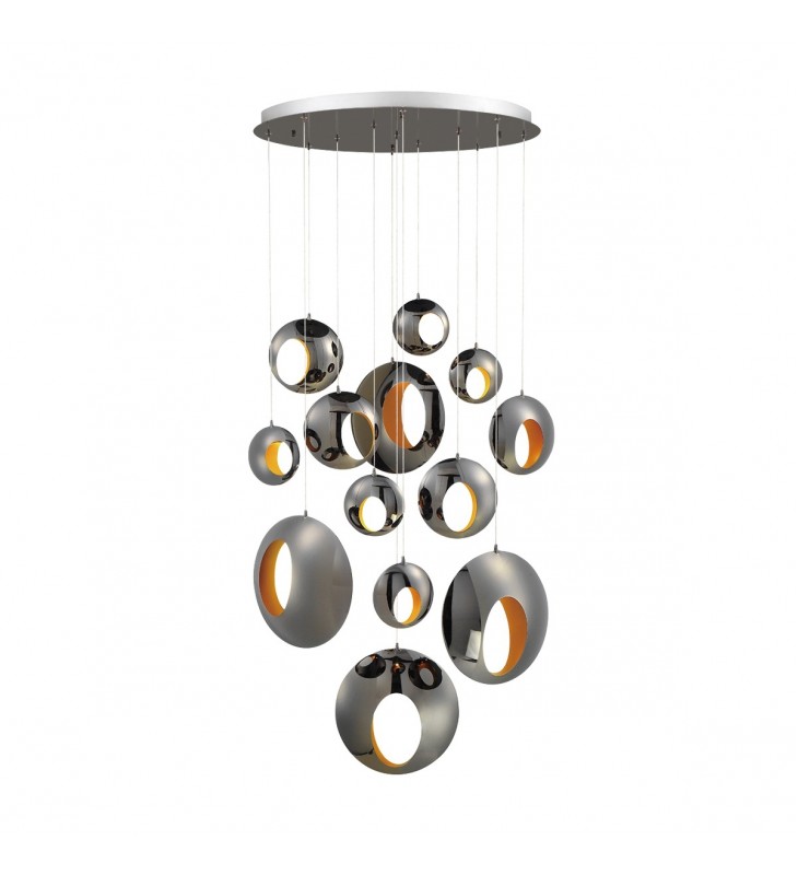 Arlington-Chd-13Lt-40In-Blk-Gd; Arlington, Chandelier, 13-Light, 40\", Chrome Black, Gold Steel